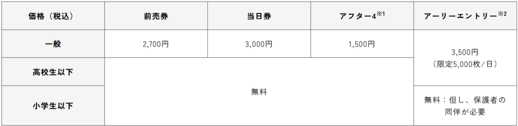 • ※2:土日・祝日の9:00から入場可能(一般入場は10:00から)