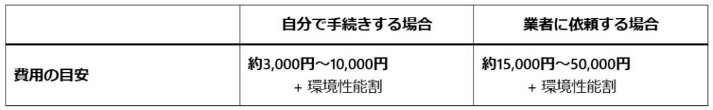 名義変更にはどれくらいの費用がかかるのでしょうか。自分でやる場合と業者に依頼する場合の目安、そして費用の内訳を解説します。