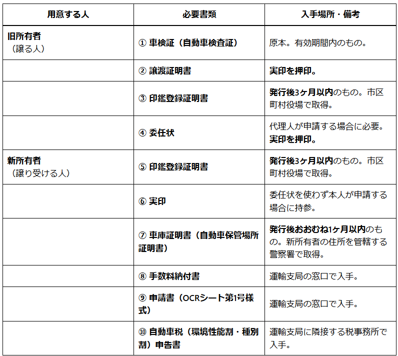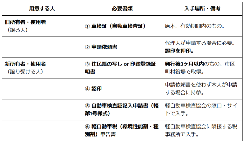 名義変更で最も重要なのが、書類の準備です。不備があると手続きができません。 「普通自動車」と「軽自動車」で必要書類が異なるため、ご自身の車種に合わせて確認してください。