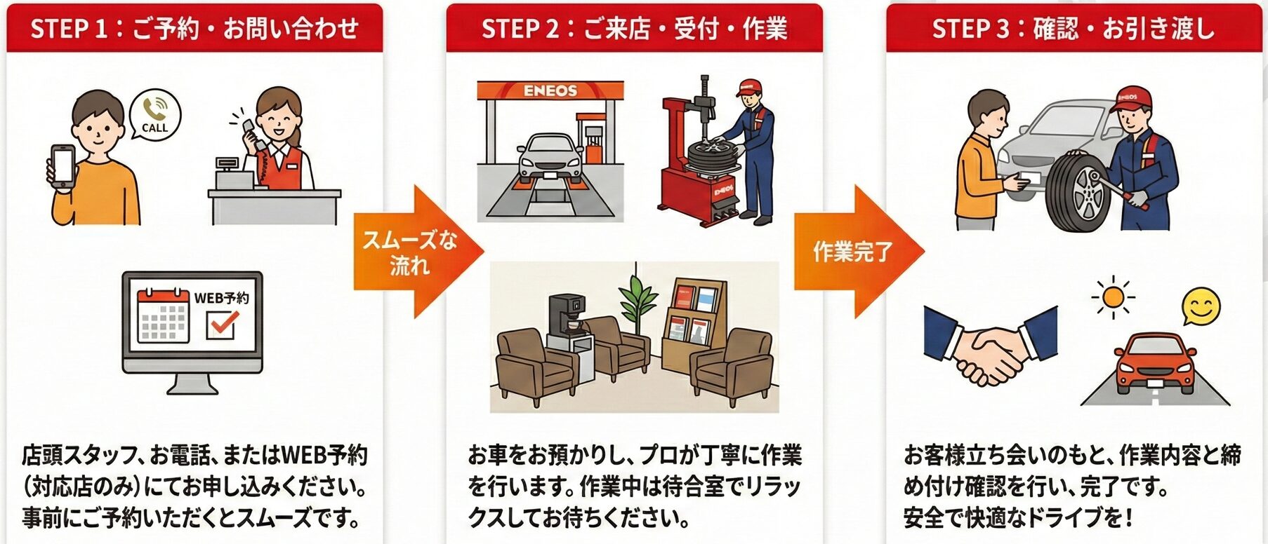 ご来店から作業完了までの流れ