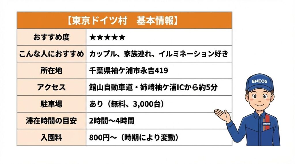 - 東京ドイツ村(イルミネーション時期は15時までの到着推奨)