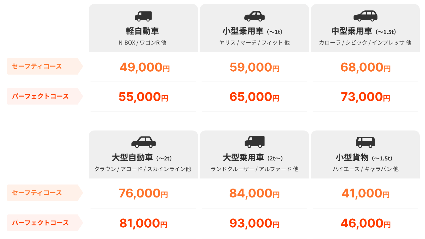 車検の参考料金