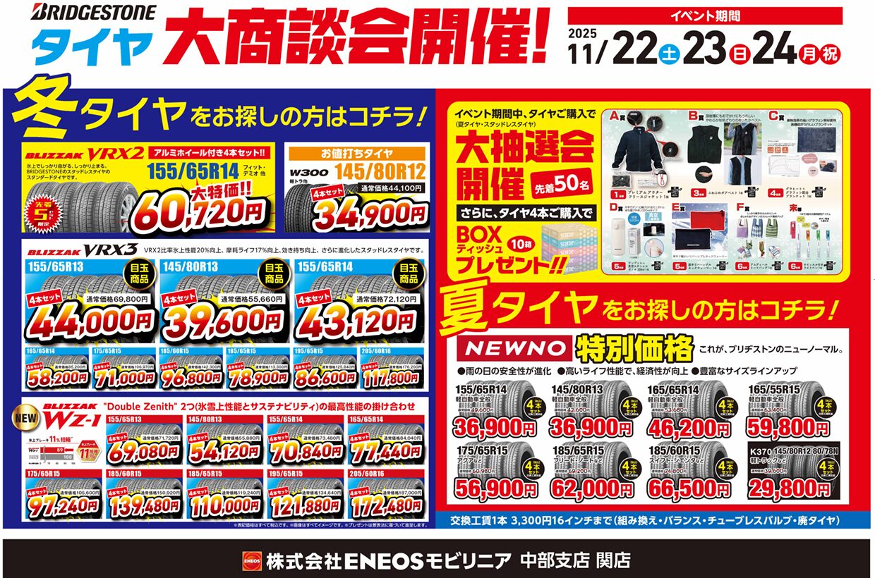 ※持ち込みタイヤの交換は行っておりません。