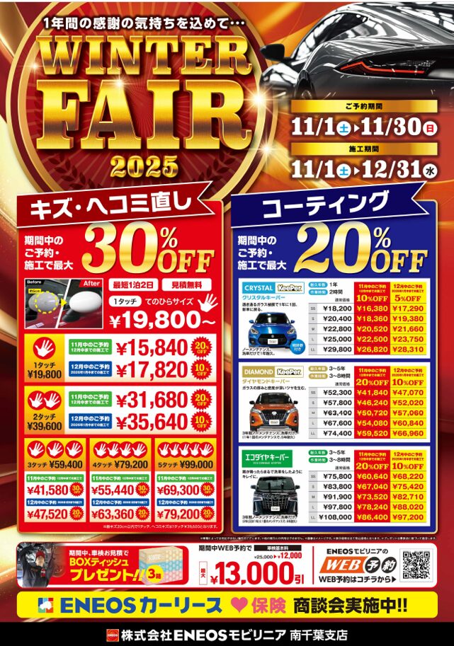 お車のサイズによって料金が異なります。正確な料金は店頭でご確認ください。