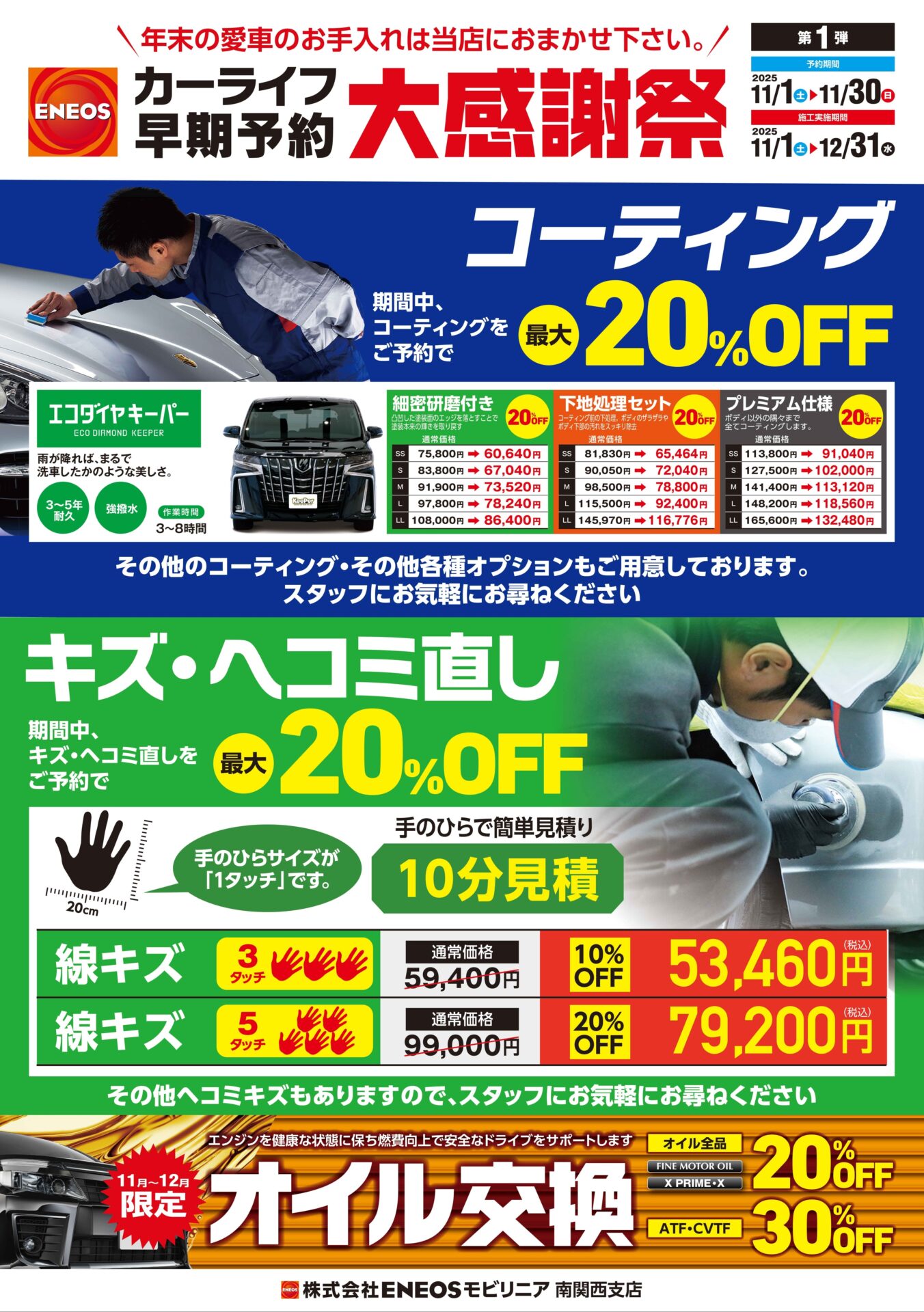 【11/1~キャンペーン開催!コーティング料金最大20%OFF】